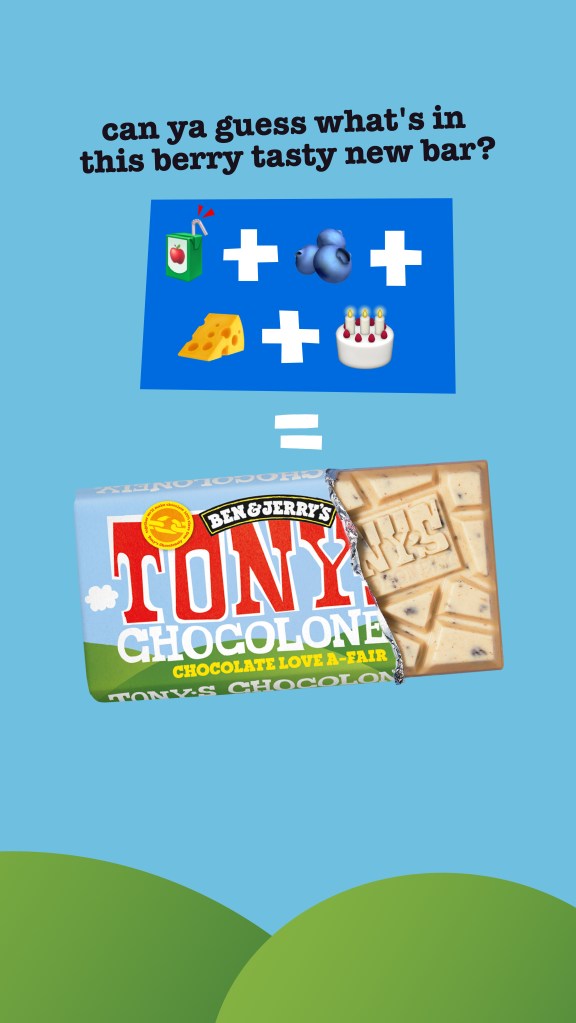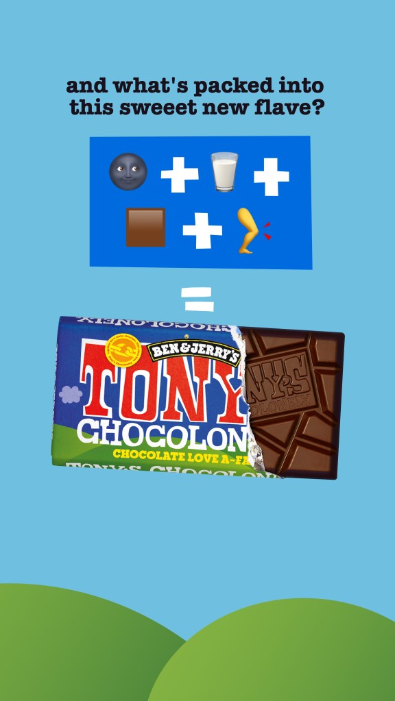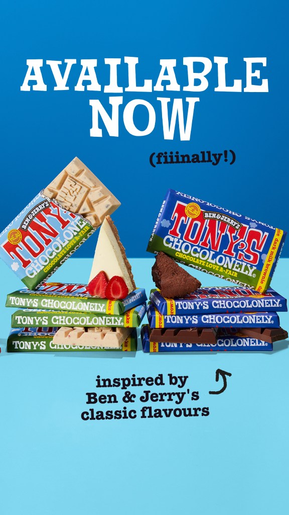 ➡ Writing and concepting 360 copy for the product launch of Tony’s Chocolate Love A-Fair bars inspired by Ben & Jerry’s classic flavours – made to celebrate the activist ice cream company joining Tony’s mission